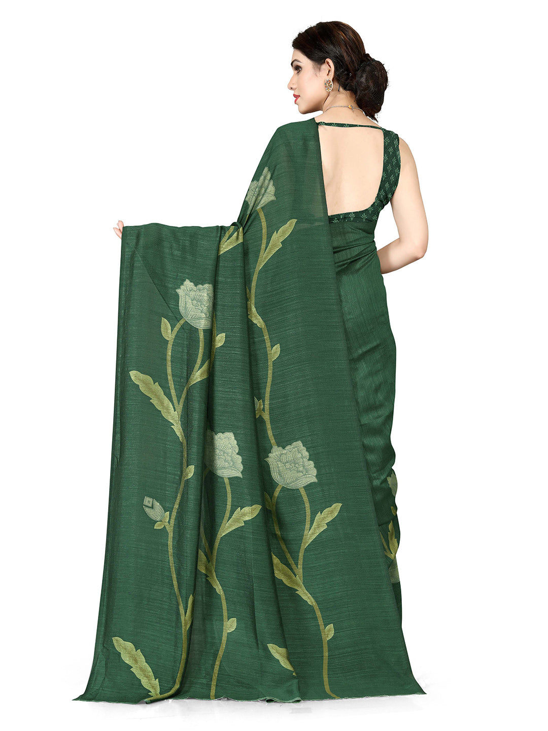 Kalini Green & Lime Green Floral Vichitra Silk Saree - Distacart