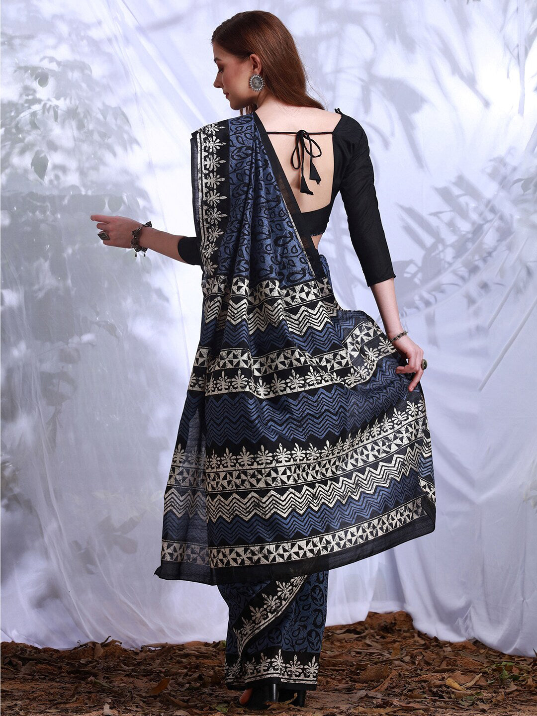 Yufta Blue Printed Saree - Distacart Yufta Blue Printed Saree