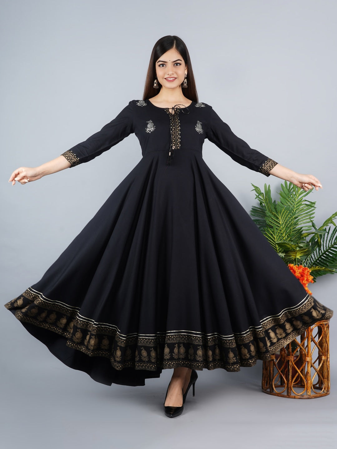Kalini Women Black & Golden Floral Embroidered Anarkali Kurta - Distacart
