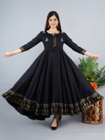 Kalini Women Black & Golden Floral Embroidered Anarkali Kurta - S