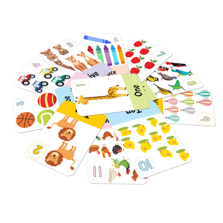 ‘Learn with Fun – Numbers Flash Cards’ features one number per card on one side. The other side of the card allows the child to trace and write the number. Recommended for toddlers these cards provide an engaging opportunity to begin recognising numbers, counting skills, and developing early math skills. These cards offer a fun way for tiny tots to meet their early education needs. •Perfect for Preschool/Kindergarten •30 double-sided wipe-clean cards•Durable both-side laminated•Full-colour images on both sides•Rounded corners•Cute colourful box pack•A pen with an eraserPerfect for little hands these flash cards will help kids learn through rich and interesting colourful images. Making early education easy and fun, these durable cards can be wiped-cleaned and reused. This great learning tool is a wonderful gift for young learners.