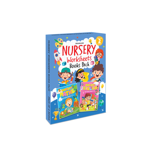 • ‘Nursery Worksheets’ this pack of two books includes worksheets on the English language and Mathematics. These books contain more than 100 illustration-based activities including maze puzzles, dot-to-dot, and many more. These activities aim to build the core language and math skills needed for success in school and beyond while having fun!