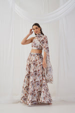 Jompers Women's Printed Beads & Stones Ready to Wear Lehenga & Blouse With Dupatta - IvoryOff white and brown printed ready to wear blouse,...