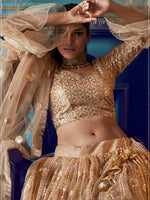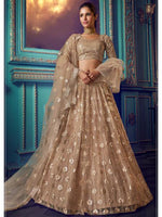 Beige Heavy Embroidered Net Lehenga features a net top and bottom with santoon inner alongside a net dupatta. Sequin is used for the embroidery of this style.