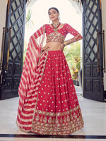 Myra Coral Red Georgette Embroidered Designer Lehenga
