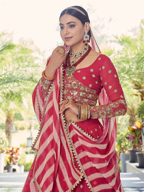 Myra Coral Red Georgette Embroidered Designer Lehenga - Distacart