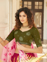 Myra Deep Pink & Olive Green Pink Georgette Embroidered Designer Lehenga