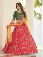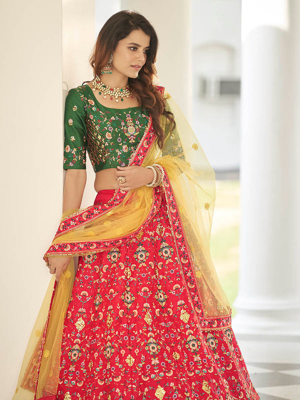 Myra Green and Yellow Heavy Embroidered Designer LehengaGreen and Yellow Heavy Embroidered Designer Lehenga features a silk choli , silk lehenga wi...