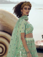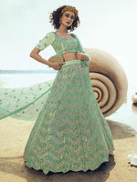 Green Embroidered Net Lehenga features a net top and bottom with santoon inner alongside a net dupatta. Sequin is used for the embroidery of this style.