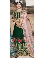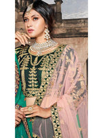 Green Embroidered Lehenga features a Pure Taffeta top and bottom with santoon inner alongside a soft net dupatta. Dori & Thread is used for the embroidery of this style.