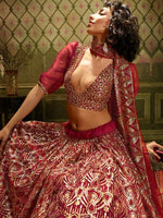 Maroon Embroidered Net Lehenga features a net top and bottom with santoon inner alongside a net dupatta. Sequin is used for the embroidery of this style.
