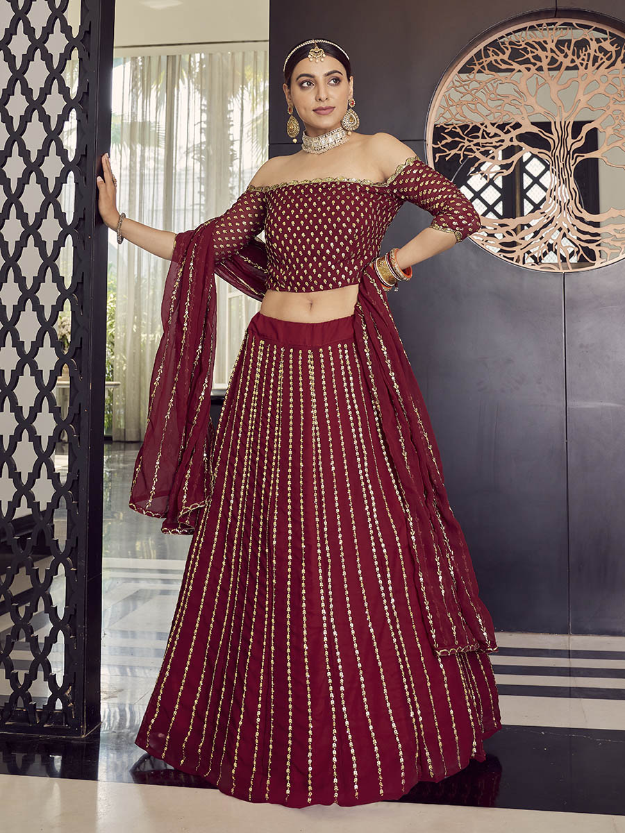 Myra Maroon Georgette Embroidered Designer Lehenga - Distacart