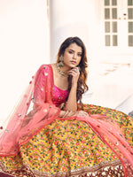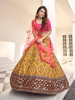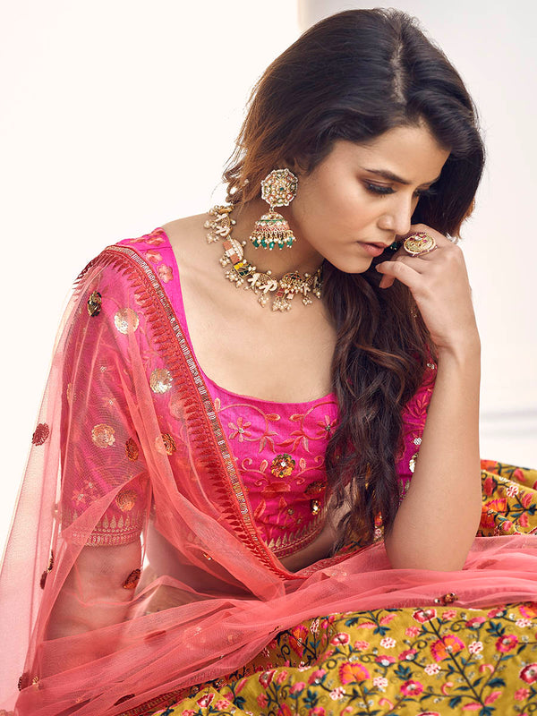 Myra Mustard Yellow and Rani Pink Art Silk Heavy Embroidered Lehenga