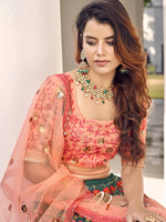 Myra Orange and Green Silk Heavy Embroidered Lehenga - Distacart