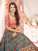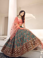 Myra Orange and Green Silk Heavy Embroidered Lehenga