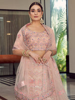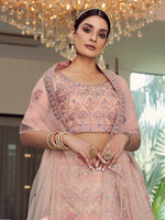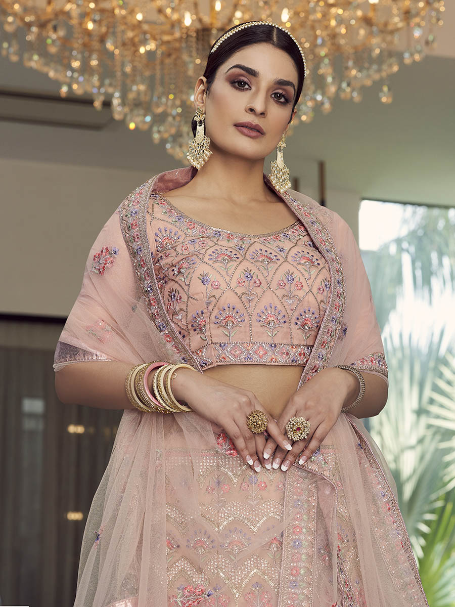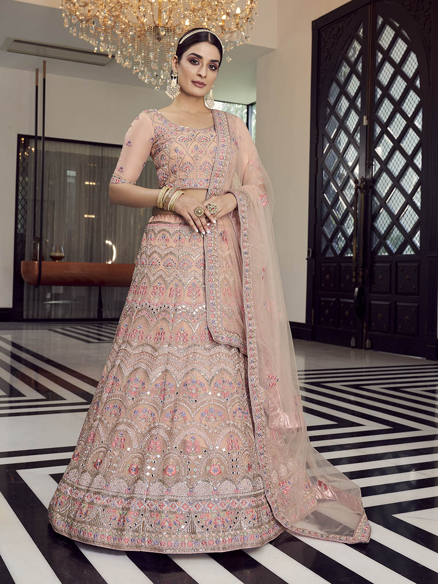 Myra Peach Organza Floral Print Embroidered Designer Lehenga - Distacart