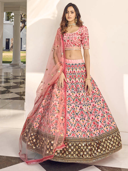 Myra Pink Art Silk Heavy Embroidered Lehenga - Distacart