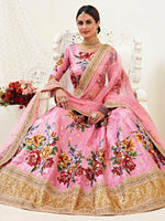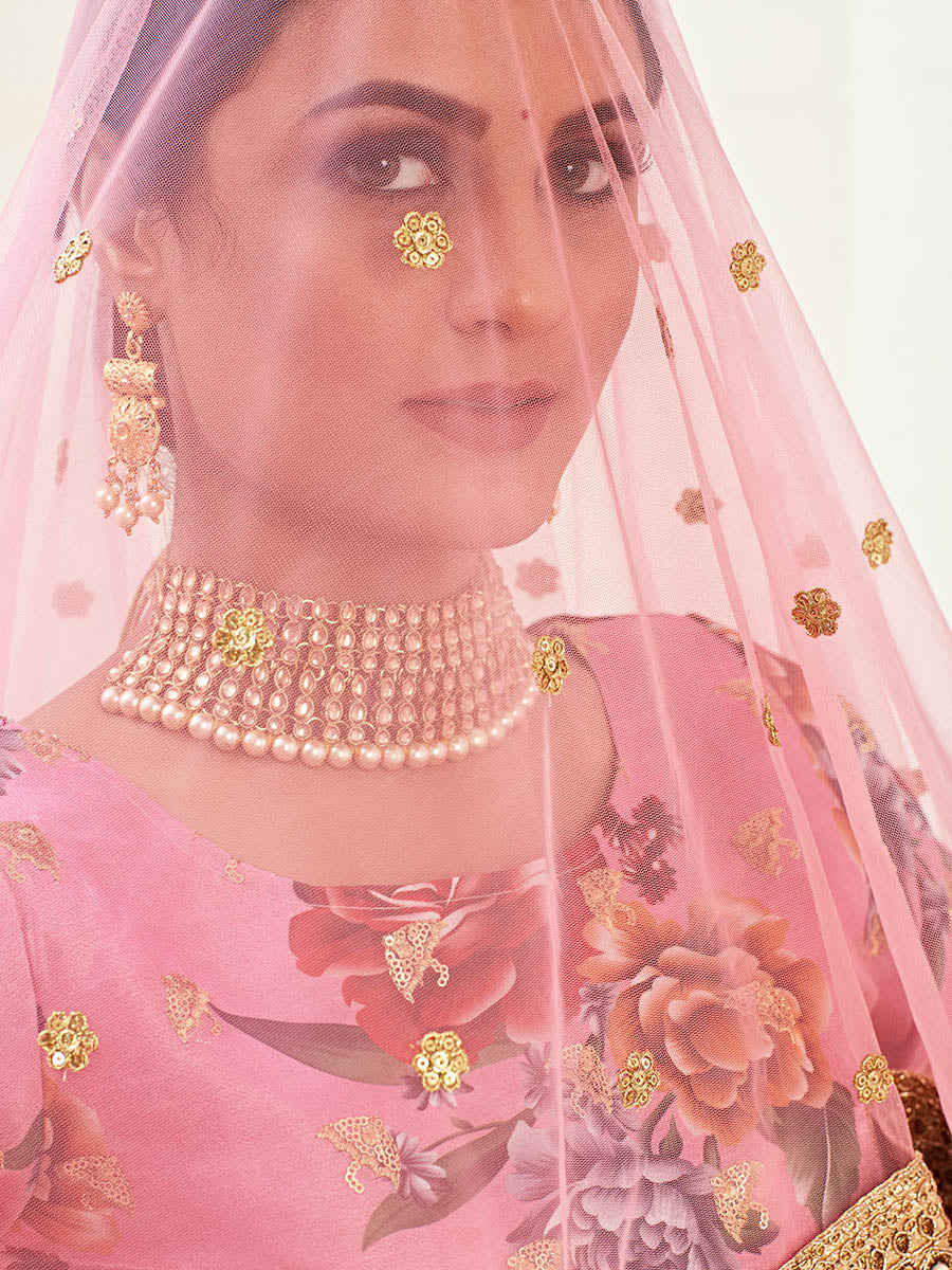 Myra Pink Floral Print Embroidered Designer Lehenga - Distacart