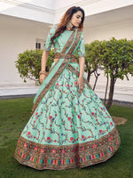Myra Pista Green Silk Heavy Embroidered Lehenga