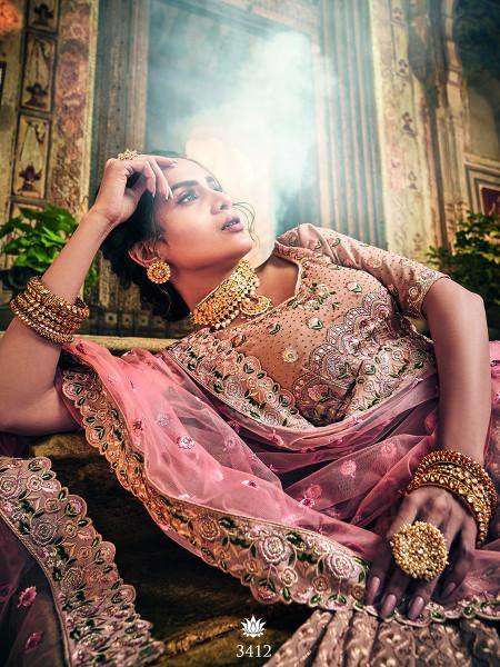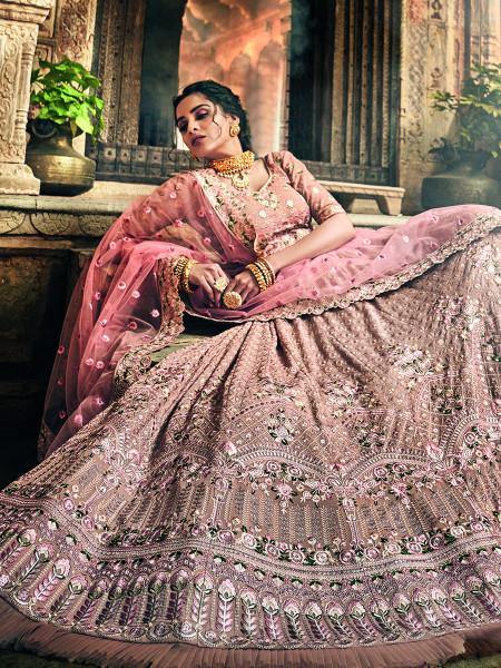 Rose Taupe Georgette Embroidered lehenga features a georgette blouse and lehenga. embroidery is completed with thread, zari,cutwork.This stye is made in India and checked by hand to ensure high quality.