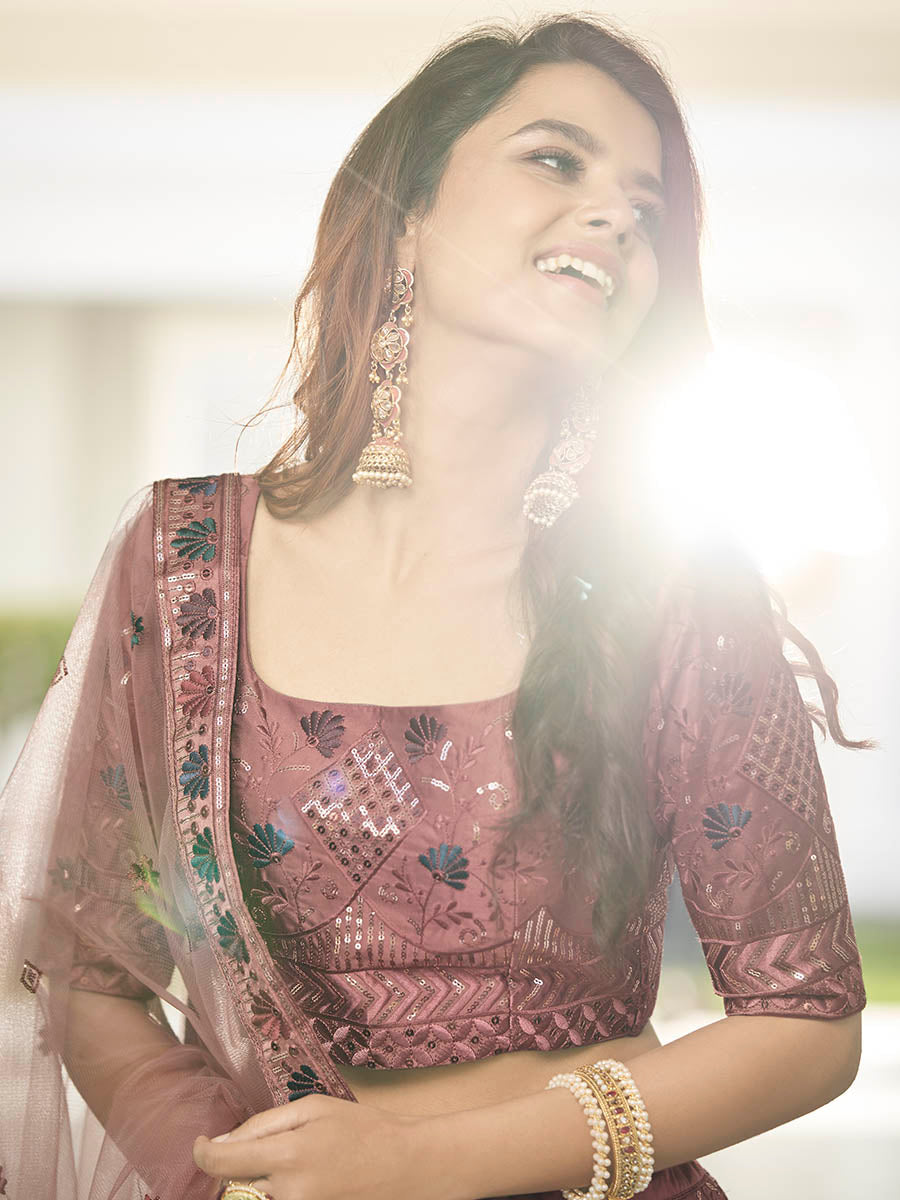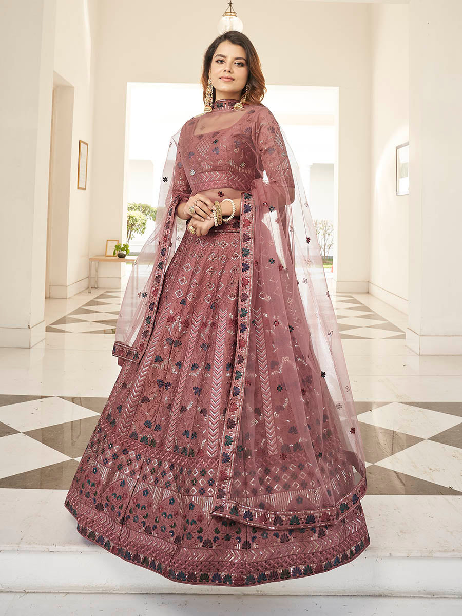 Rust Orange Heavy Embroidered Designer Lehenga features a silk choli , silk lehenga with net dupatta. Embroidery is completed with thread , sequins with stone work. This Style is made in India and checked by hand to ensure high quality.