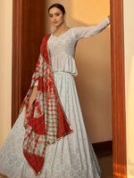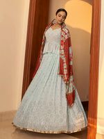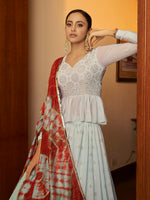 Myra Sky Multicolour Shibori Print Designer LehengaSky Multicolour Shibori Print Designer Lehenga features a georgette lehenga with georgette choli...