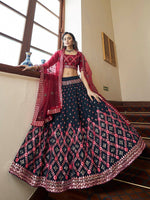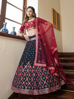 Myra Teal Blue and Maroon Georgette Embroidered Party Wear Lehenga