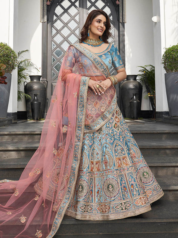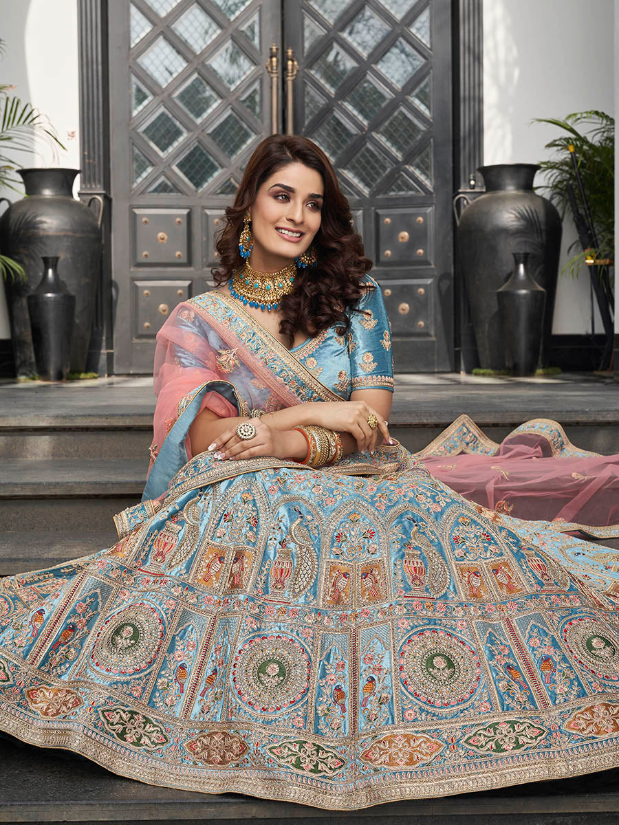 Myra Turquoise Velvet Embroidered Designer Lehenga - Distacart