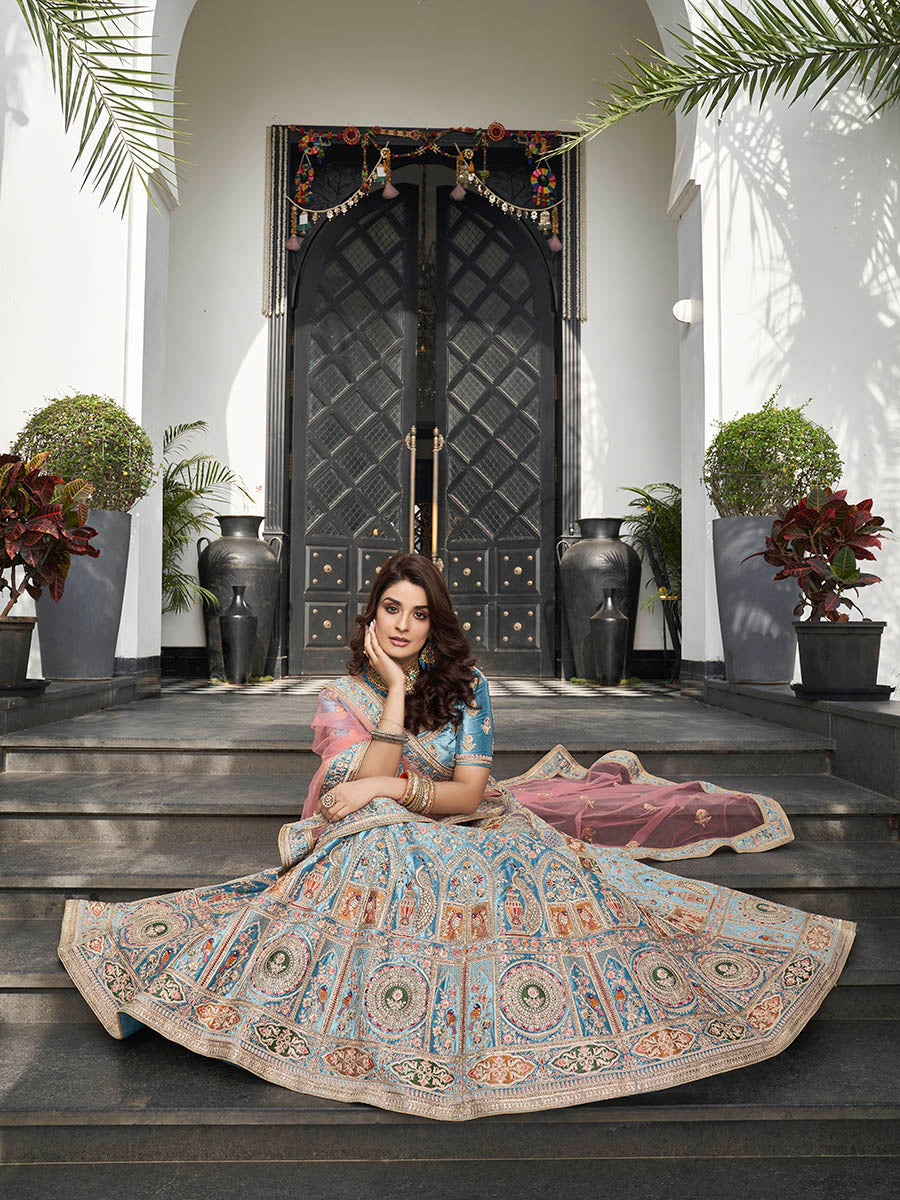 Myra Turquoise Velvet Embroidered Designer Lehenga