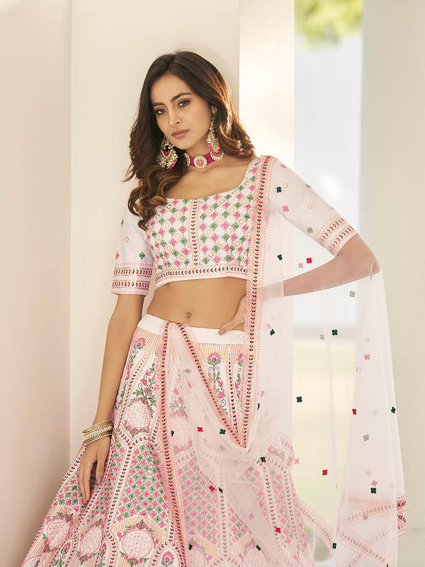 Myra White Heavy Embroidered Designer Lehenga - Distacart