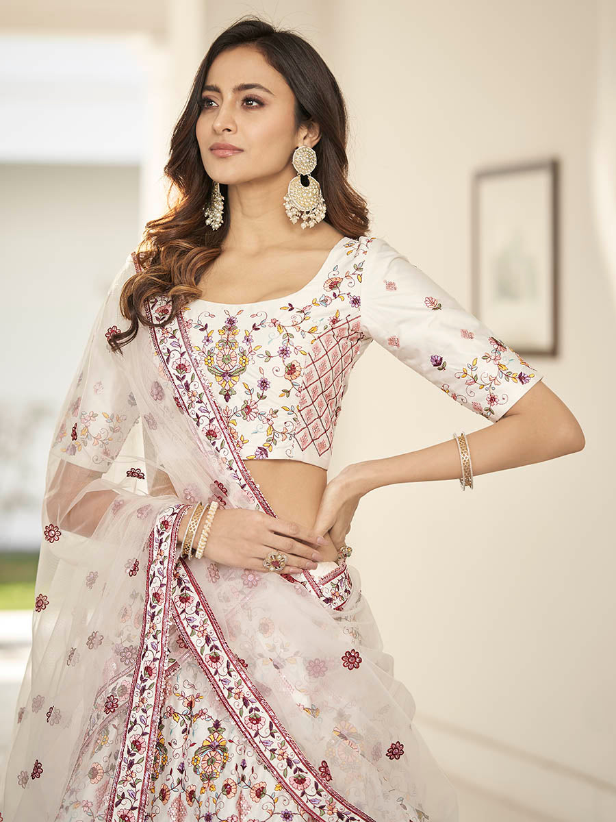 Myra White Heavy Embroidered Designer Lehenga - Distacart