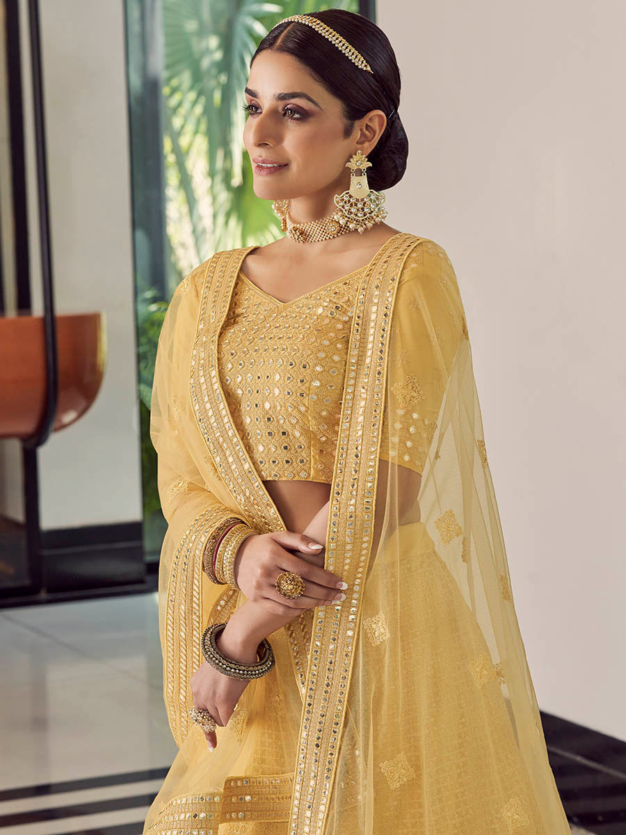 Myra Yellow Georgette Embroidered Designer Lehenga - Distacart