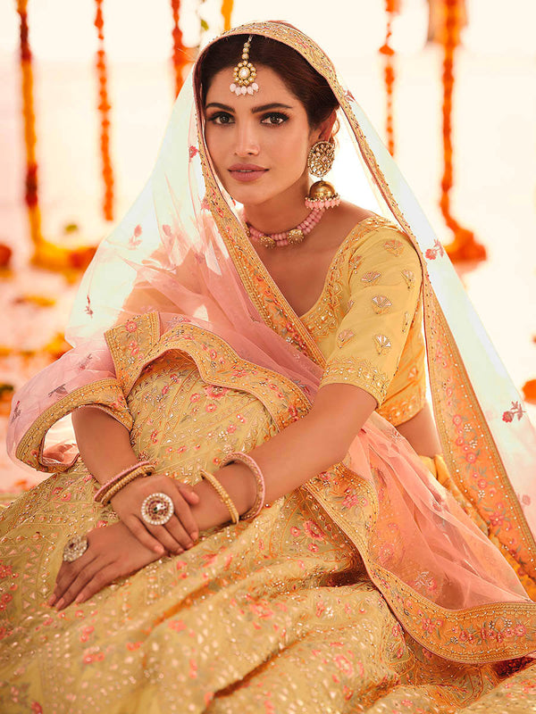 Myra Yellow Organza Embroidered Designer Lehenga - Distacart