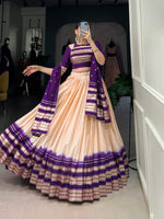 Lorenvalley Off White Pure Chanderi Plain With Zari Weaving Work Border Lehenga Choli - Free Size