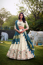 Lorenvalley Offwhite Khadi Cotton Sequins And Thread Embroidery Work Lehenga Choli with Dupatta