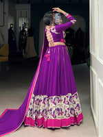 Lorenvalley Purple Pure Rayon Printed And Original Mirror Hand Work With Lace Touch Up Lehenga Choli with Dupatta