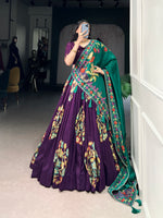 Lorenvalley Purple Tussar Silk Printed And Foil Work With Lace Touch Up Lehenga Choli with Dupatta - Free Size