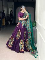 Lorenvalley Purple Tussar Silk Printed And Foil Work With Lace Touch Up Lehenga Choli with Dupatta - Distacart