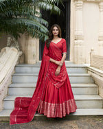 Lorenvalley Red Pure Chanderi Plain With Zari Weaving Work Border Lehenga Choli - Free Size