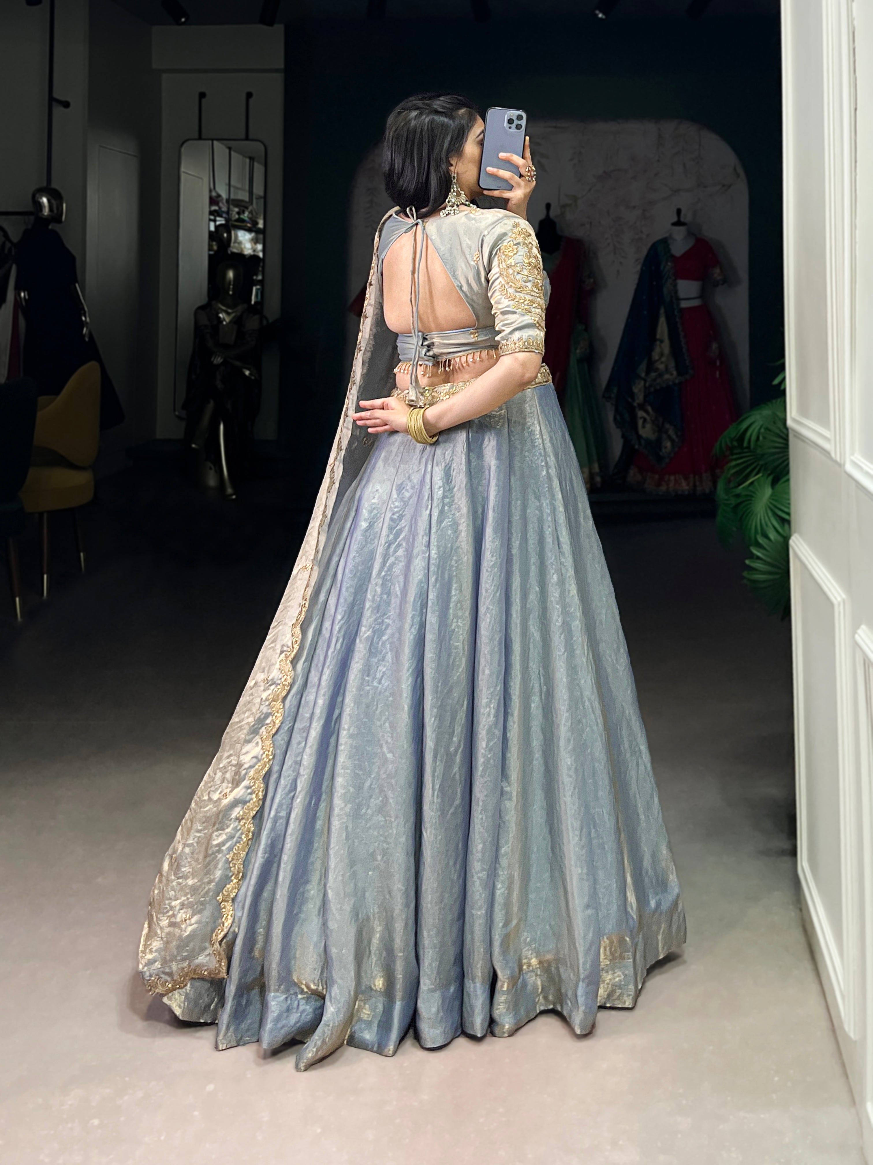 Lorenvalley Skyblue Fendi Silk Sequins and Thread Embroidery Work Belt Lehenga Choli with Dupatta