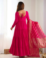 Lorenvalley Women Pure Roman silk Chanderi Fabric Layer Gathering Anarkali Kurta Pant With Dupatta Set - Magenta