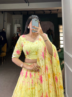 Lorenvalley Yellow Tabby Silk Floral Print With Lace Touch Up Lehenga Choli with Dupatta - Free Size