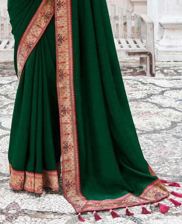 Green Vichitra Solid Saree With Unstitched Blouse Piece - Juhi