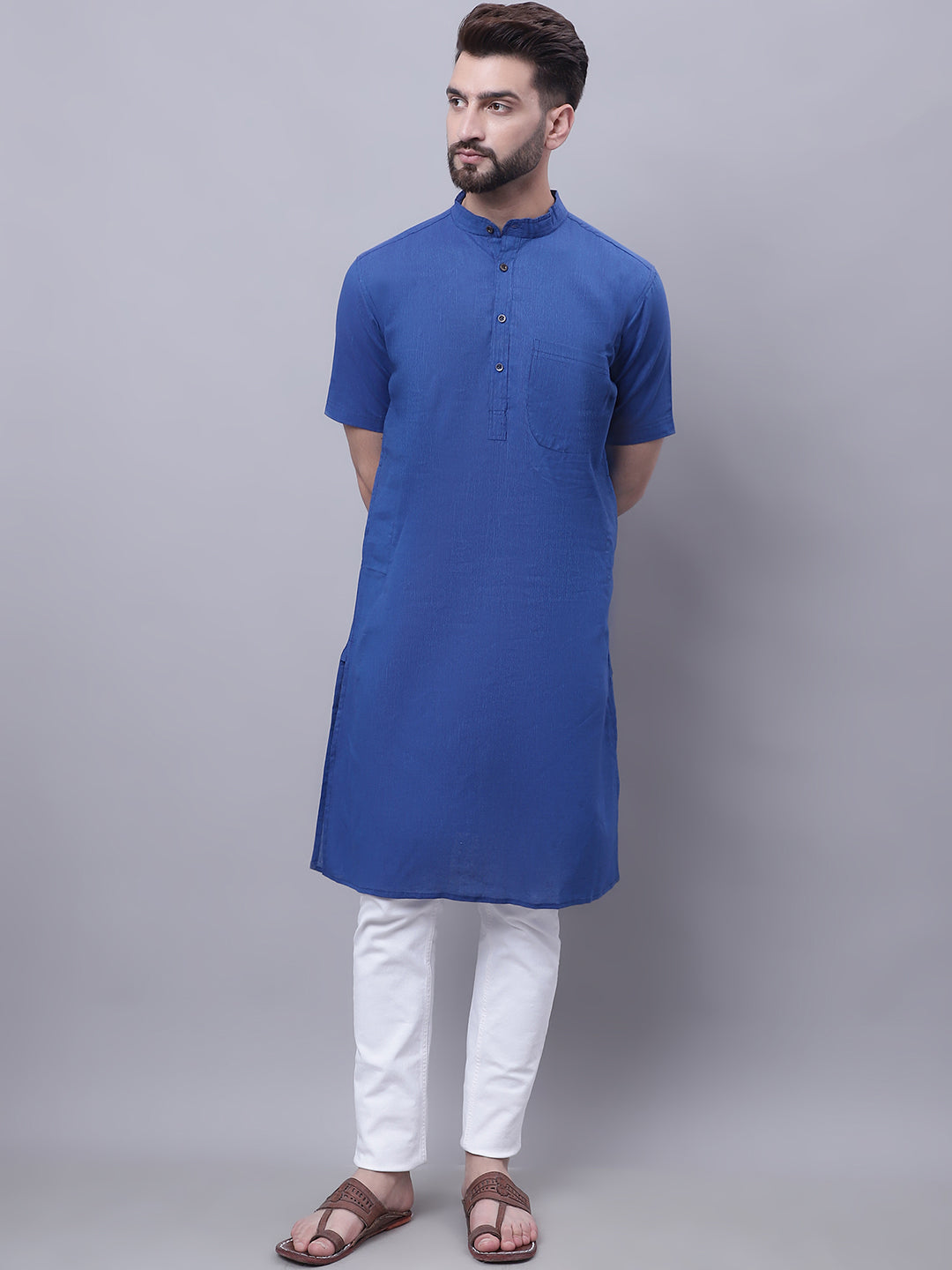 Pure cotton short sleeves kurta with band collar.