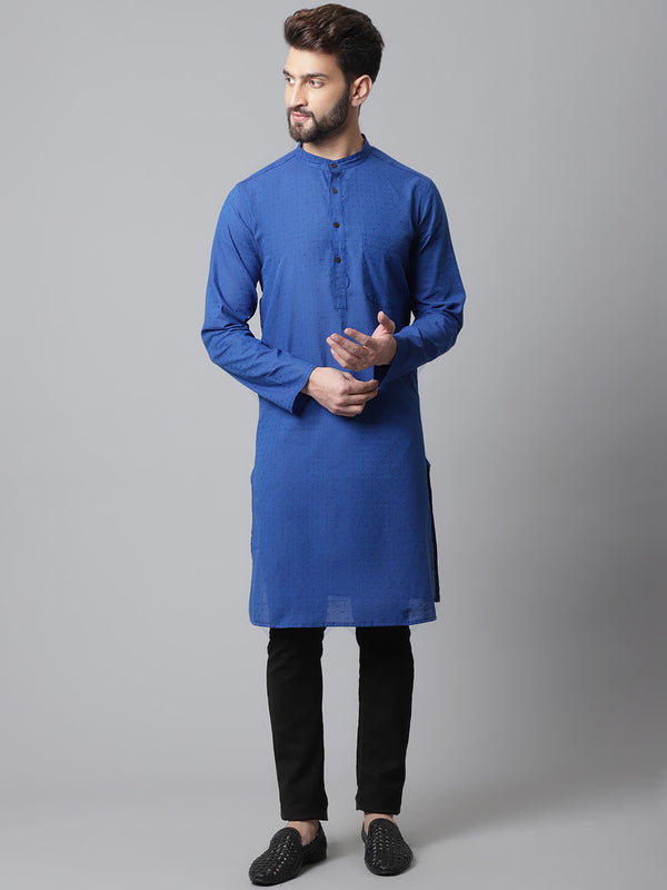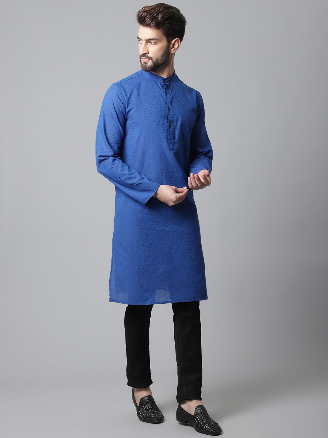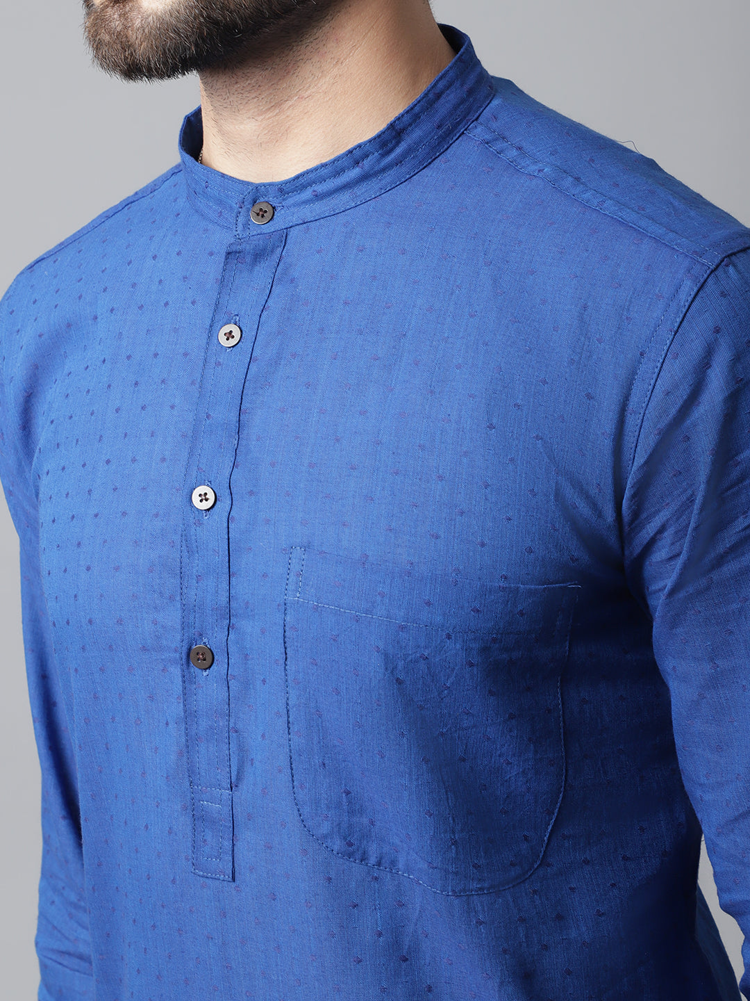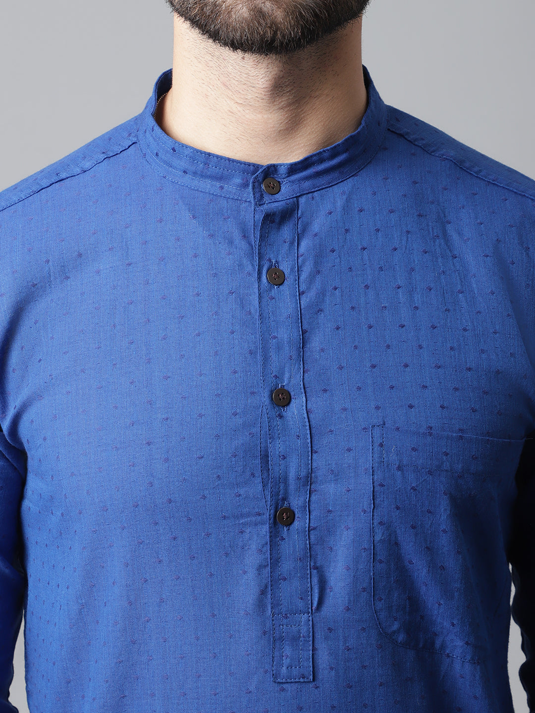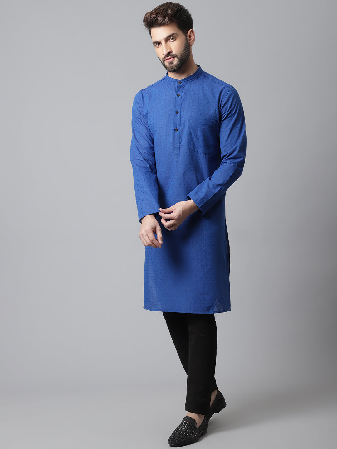 Solid kurta with band collar.