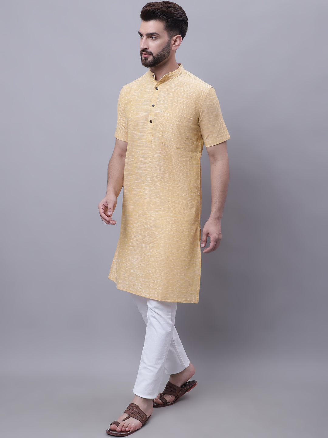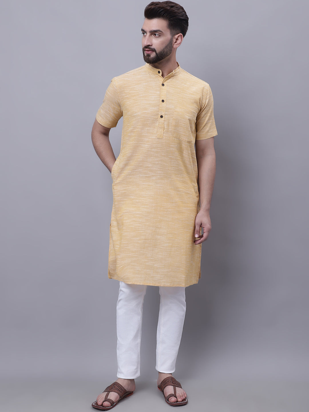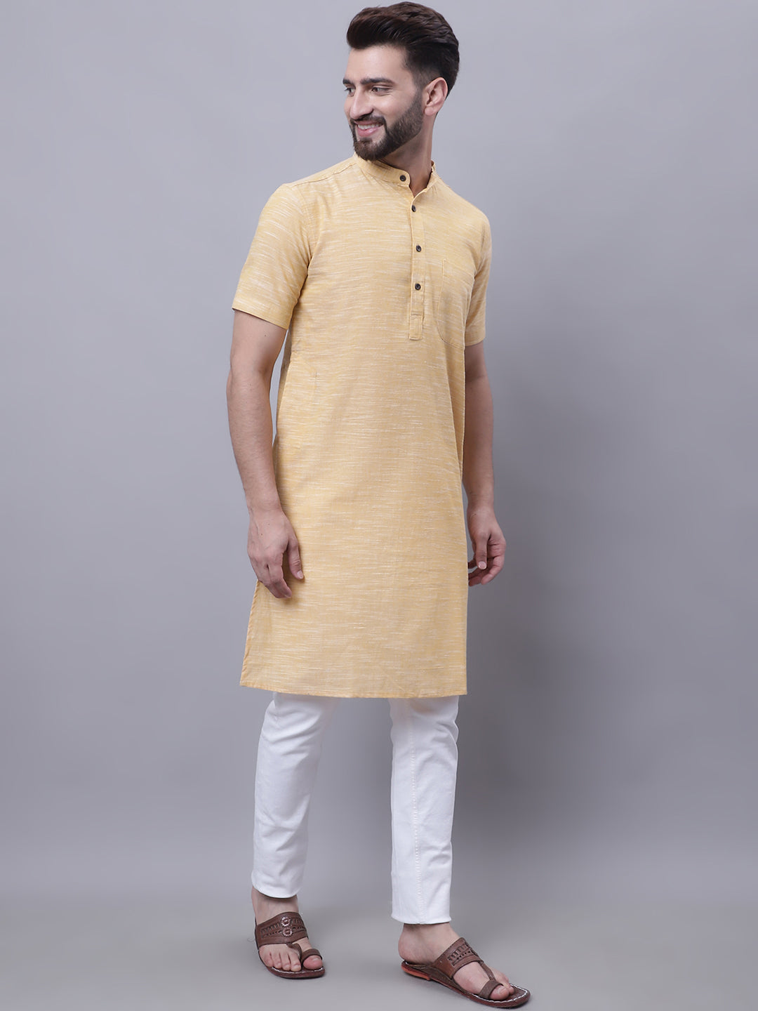 Pure cotton short sleeves kurta with band collar.