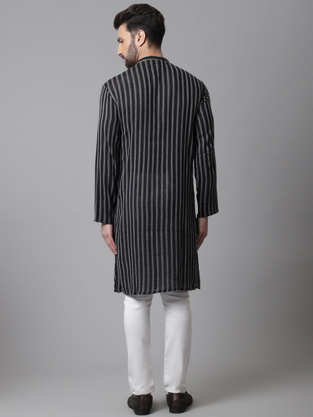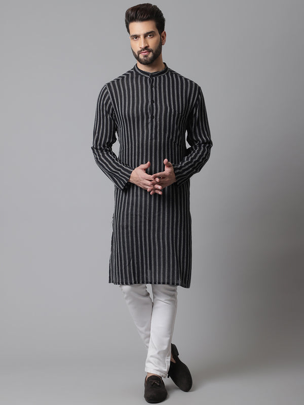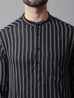 Even Apparels Black Pure Cotton Kurta With Band Collar