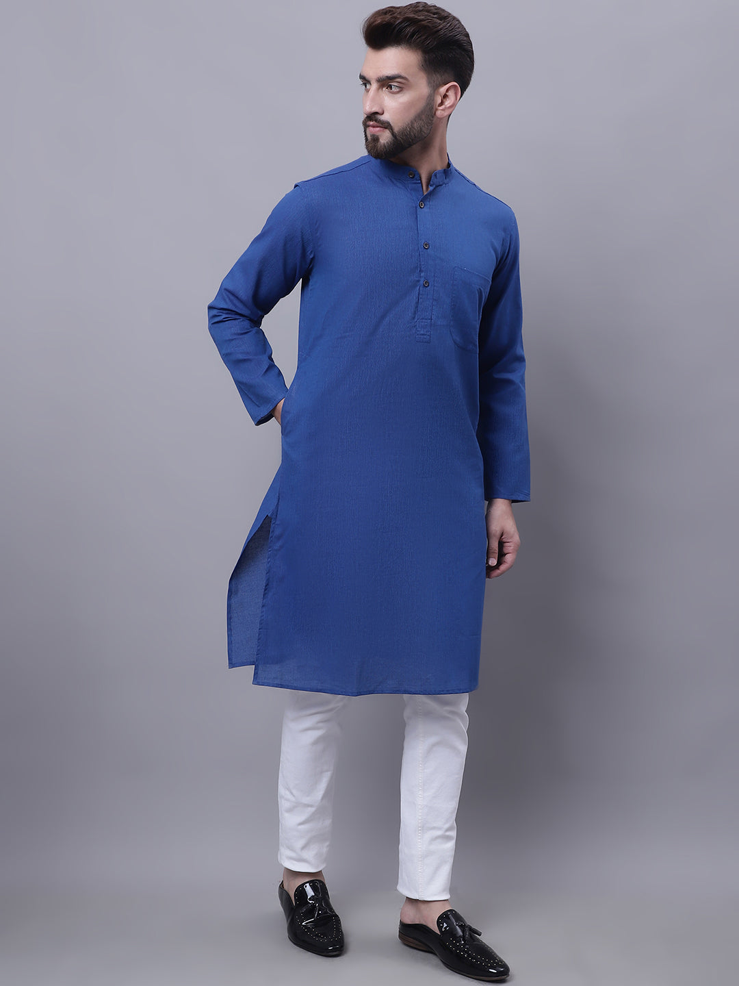 Even Apparels Blue Pure Cotton Kurta With Band Collar - Distacart