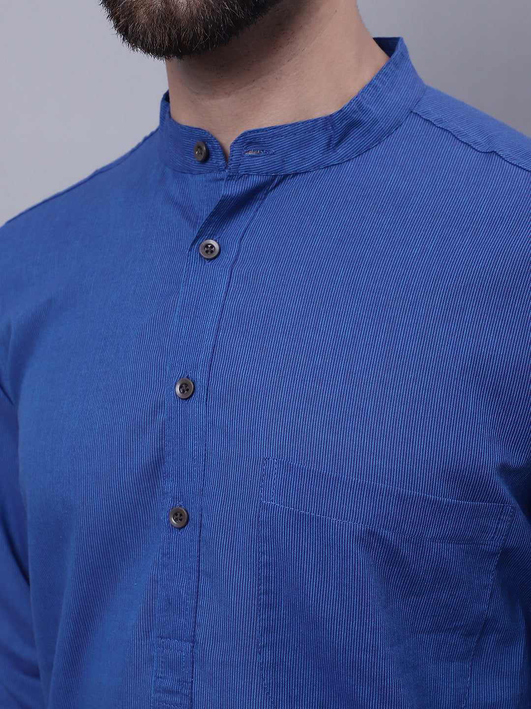 Even Apparels Blue Pure Cotton Kurta With Band Collar