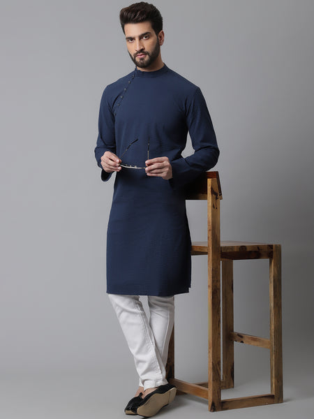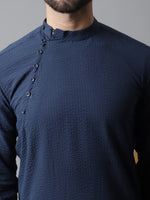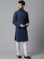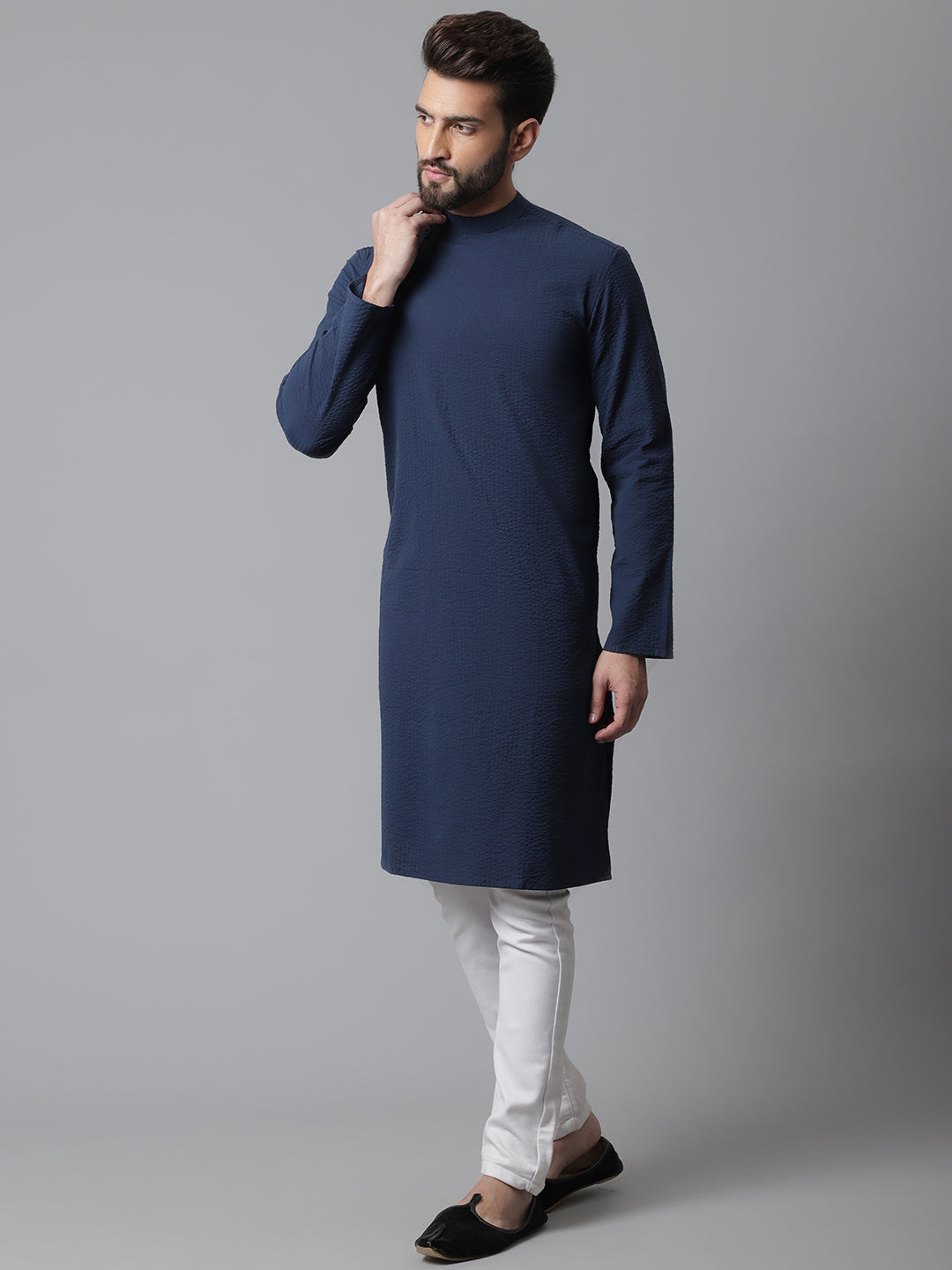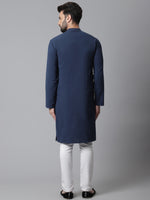 Even Apparels Blue Solid Kurta With Band Collar - Distacart